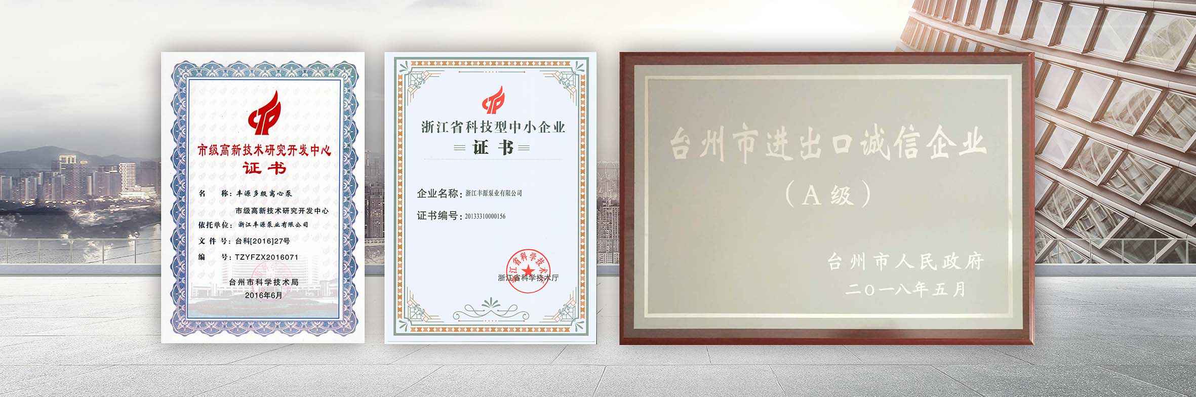 公司为“国家高新技术企业”,市级“高新技术研发中心”,连续数年入选温岭市“百强企业”。