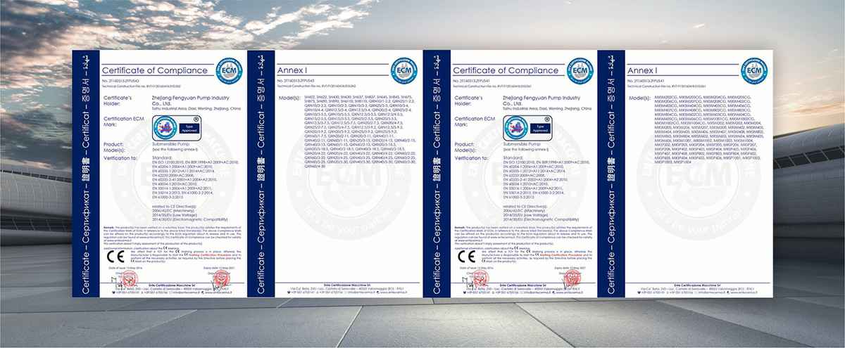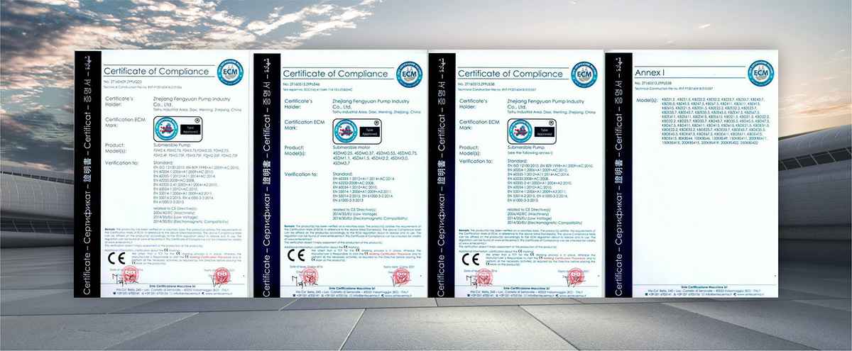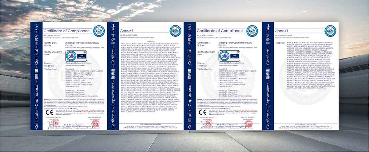 公司是全国农机标委会排灌设备和系统分会委员、是《小型潜水电泵》、《污水污物潜水电泵能效限定值及能效等级》、《井用潜水电泵能效限定值及能效等级》等多项国家标准,以及《大中型潜水电泵》、《水泵综合性能试验台校准规范》等行业标准的主要起草单位之一;公司通过IS09001:2015质量管理体系认证,多个系列产品取得CE、SASO等证书。